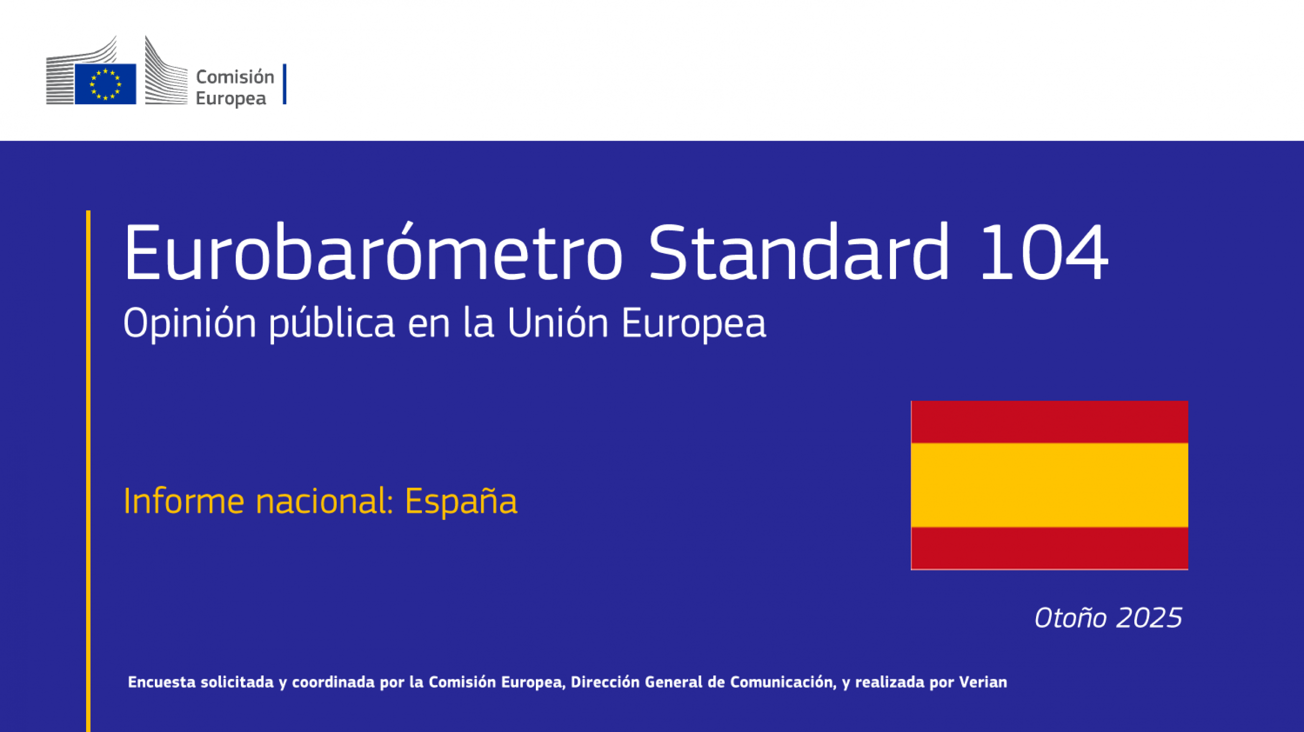 Madrid, 17 de diciembre de 2025.- La Representación de la Comisión Europea en España ha presentado hoy los principales resultados del Eurobarómetro Estándar de otoño (EB 104) para España, realizado entre octubre y noviembre de 2025. El estudio refleja las opiniones de los ciudadanos españoles sobre la Unión Europea y los principales retos nacionales y europeos.